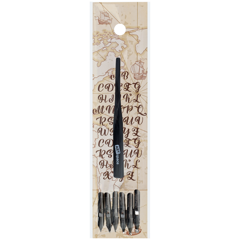 Перья каллиграфические ArtSpase, круглые, 6шт, с держателем