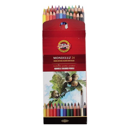 Набор цветных акварельных карандашей MONDELUZ производства компании KOH-i-NOOR – это 24 профессиональных карандаша премиум-класса, упакованных в картонную упаковку. Карандаши MONDELUZ отличаются высокой концентрацией пигмента и превосходной растворимостью. Цветовая гамма включает 72 различных оттенка.
