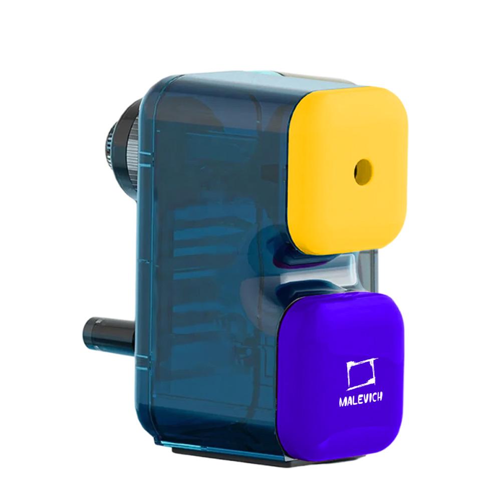 Точилка для художников механическая прозрачная Малевичъ, сине-желтая