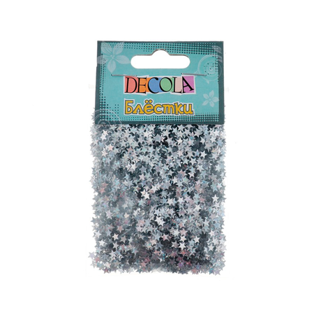 Блестки декоративные звезды Декола, серебро радужное, 4мм, 20г