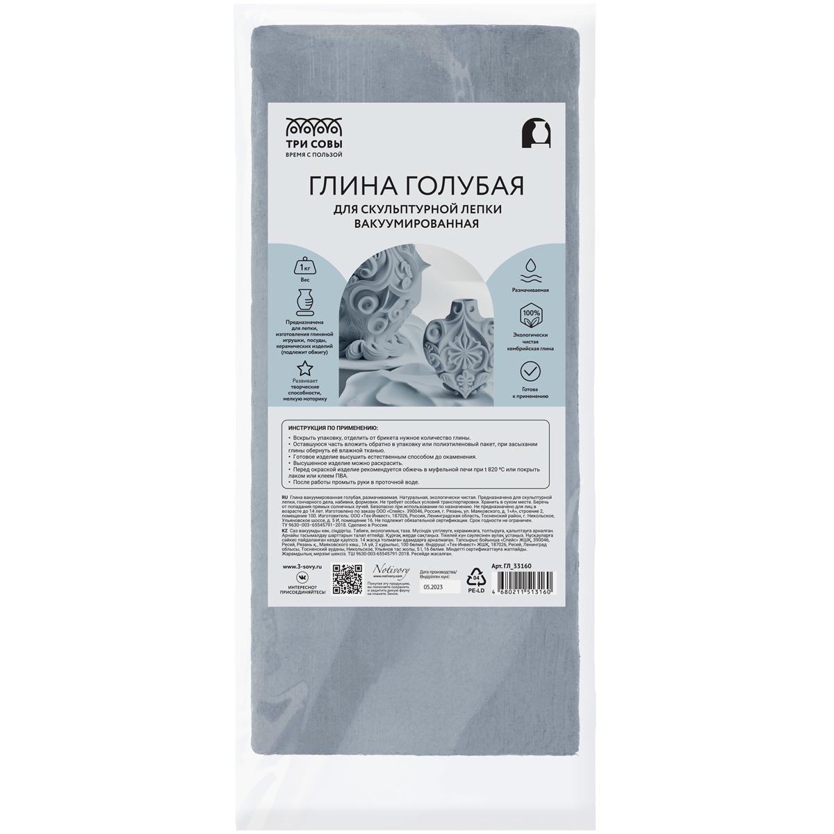 Глина для скульптурной лепки ТРИ СОВЫ, голубая, 1кг
