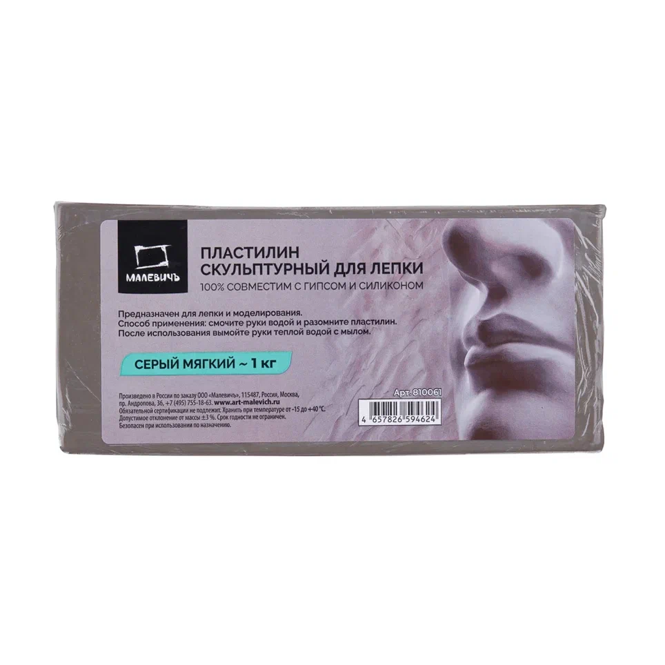 Пластилин скульптурный Малевичъ 1000г, серый, мягкий