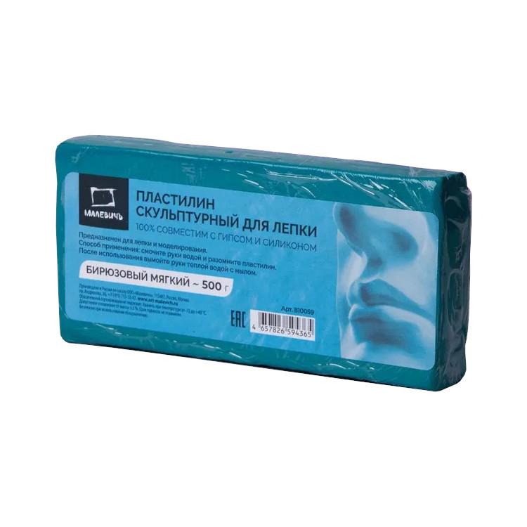 Пластилин скульптурный Малевичъ 500г, бирюзовый, мягкий
