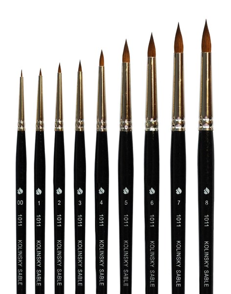 Колонковые кисти самая обширная по ассортименту серия, что не удивительно, так как колонок – универсальный волос, позволяющий работать практически со всеми видами красок. К тому же, никакой другой кистью невозможно прописать мелкие детали маслом на холсте. Колонок – хищный пушной зверек из семейства куньих, в неволе не живет. Его родина – Сибирь, Китай, и Корея (регионы с суровыми зимами) Волос колонковых кистей имеет веретенообразную форму, заостряется до тончайшего изумительного кончика. С кончика краска стекает непрерывным потоком и с превосходной консистенцией. Лучшими признаны кисти из волоса колонка сибирского происхождения. Для изготовления кисти используется волос из хвоста. Колонковые кисти имеют волос золотисто – коричневого цвета. Кисть из колонка, благодаря своей универсальность может быть использована для создания миниатюрной живописи и масштабных произведений, - отсюда и наличие разных серий по длине ручки. Длинная ручка позволяет писать, находясь в отдалении от самого произведения, и охватывать взглядом большую поверхность.