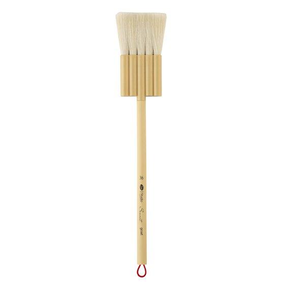 Эти кисти предлагаются в размерах №1, 3 и 4.  Размер кисти соответствует ширине обоймы у места где ворс выходит из нее. За счет того, что кисти собраны из микса белки и синтетики, они получаются более износостойким.