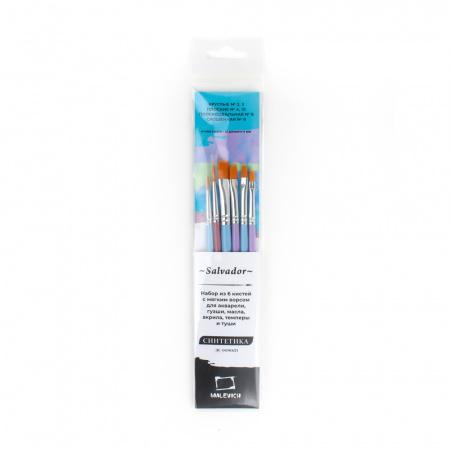 Набор кистей из синтетики Salvador, круглые 2, 3, плоские 4, 10, плоскоовальная 6, скошенная 8