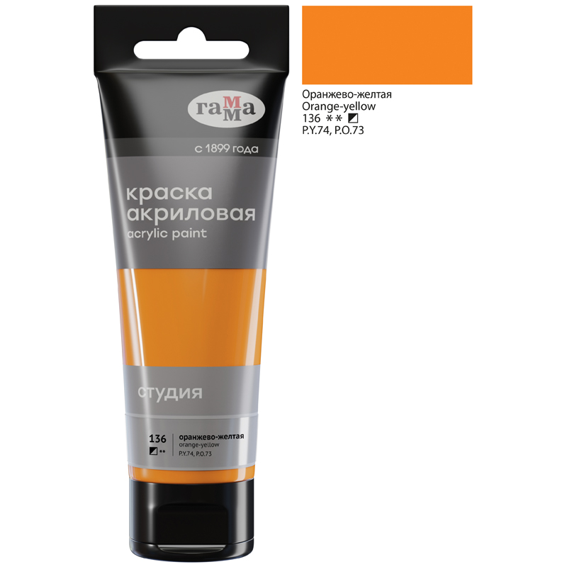 Акрил худ. "Студия", 75мл, оранжево-желтая