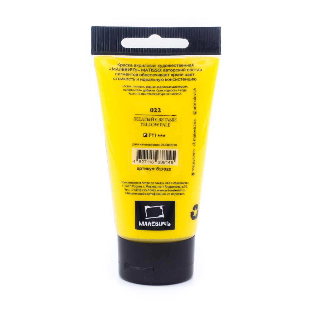 Акрил Малевичъ Matisso 60 мл, Желтый светлый