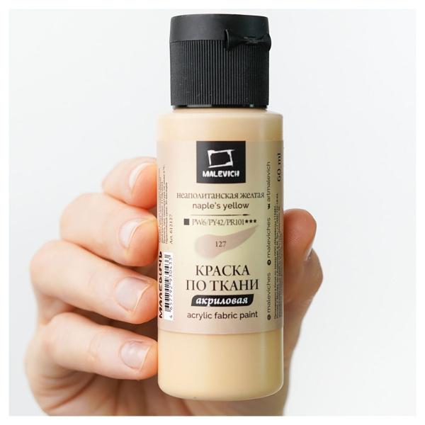 Краска акриловая по ткани Малевичъ, неаполитанская желтая, 60 мл