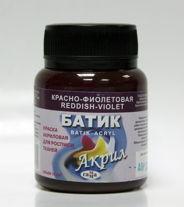 Краски по ткани «БАТИК-АКРИЛ» изготавливаются на основе акриловых смол. Предназначены для росписи и декоративного оформления натуральных и синтетических тканей. Краски можно применять при свободной росписи тканей, а также для оформления тканей методами холодного, горячего и декоративного батика. Краски по ткани «БАТИК-АКРИЛ» можно использовать концентрированными или при необходимости разбавлять водой. Для получения новых цветов и оттенков их можно смешивать друг с другом. Краски не требуют запаривания, готовое изделие достаточно прогладить с изнаночной стороны и постирать.