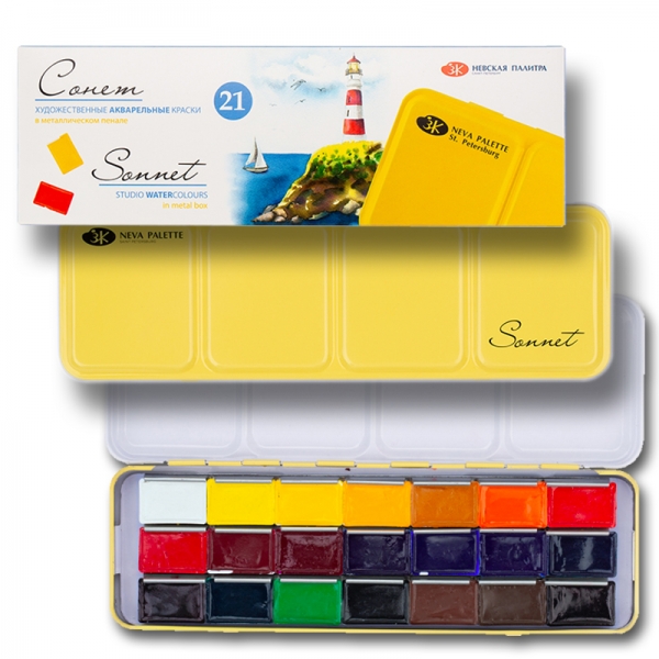 Н-р акварельных красок "Сонет", 21 цв. в метал. пенале 351101514