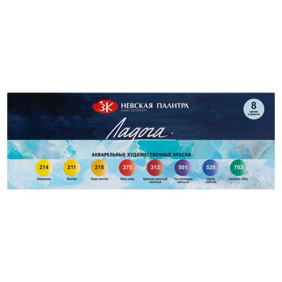 Набор акварельных художественных красок "Ладога" картон, 8 цв. в кюветах по 2,5мл