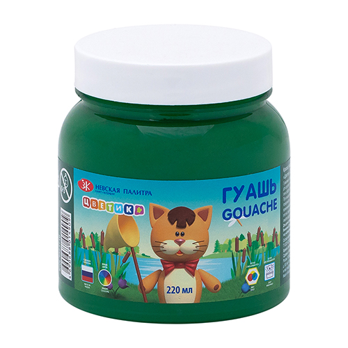 Гуашь 220 мл, зеленая темная, Цветик
