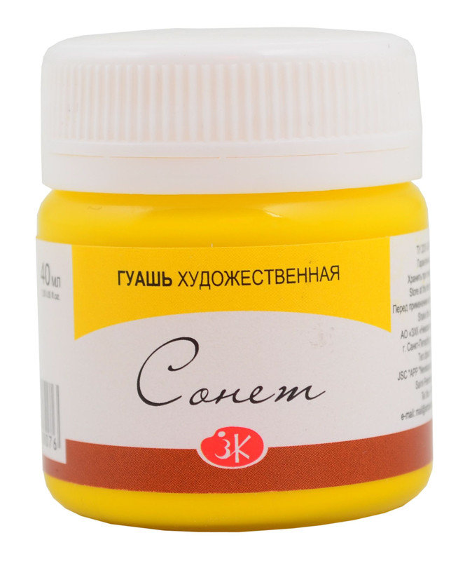 Гуашь худ. 40 мл Желтая Сонет ЗХК 211
