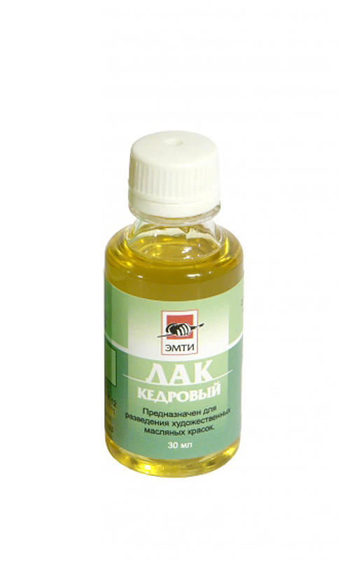 Лак кедровый – это раствор кедрового бальзама в пинене. Имеет светлый цвет. Применяется для разведения масляных красок.