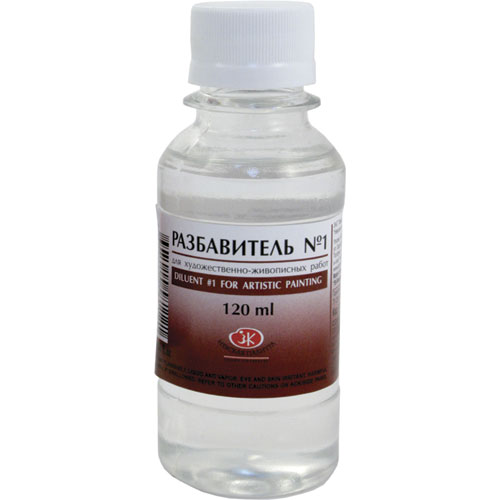 Применяется для разведения масляных, пентамасляных, алкидных красок и для смывания красок с полотен, палитр, кистей. Для разбавления лаков не пригоден. Состоит из смеси живичного скипидара и уайт-спирита.